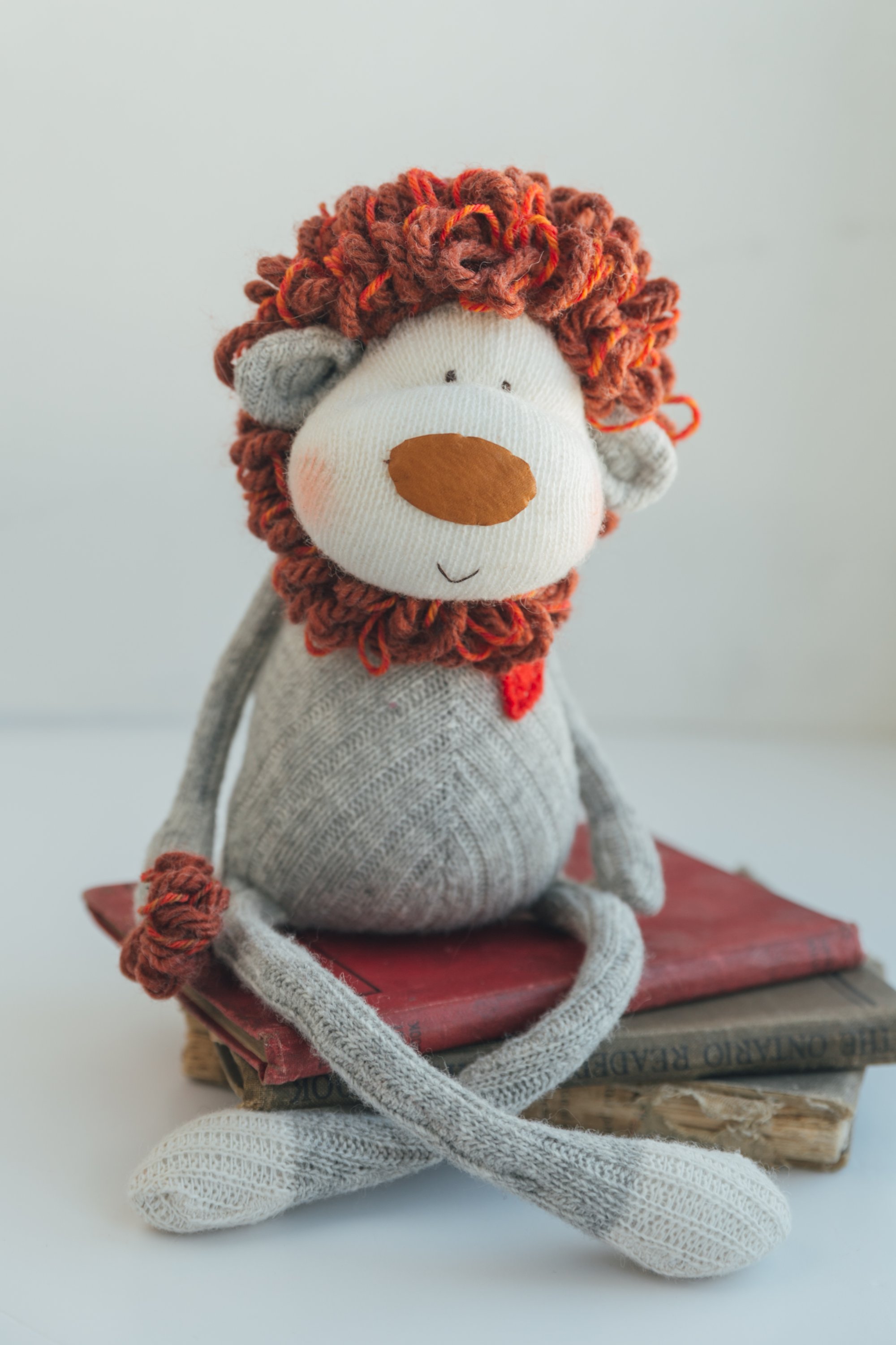 Leo - Sculpted Sock Lion, Polyfilled and Weighted